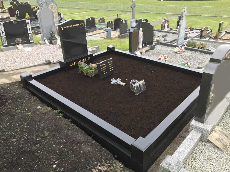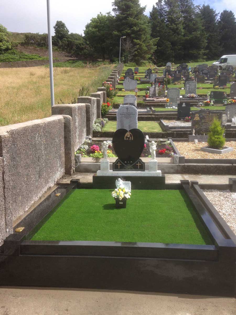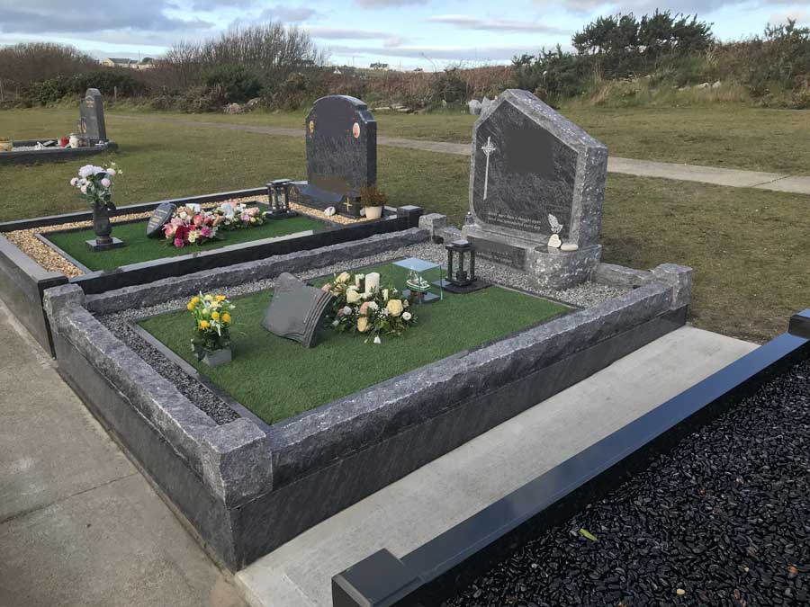 This all depends on your taste and budget. Here at Boyle Memorials, we offer artificial grass, chippings, pebbles, and stone as materials for grave covering.